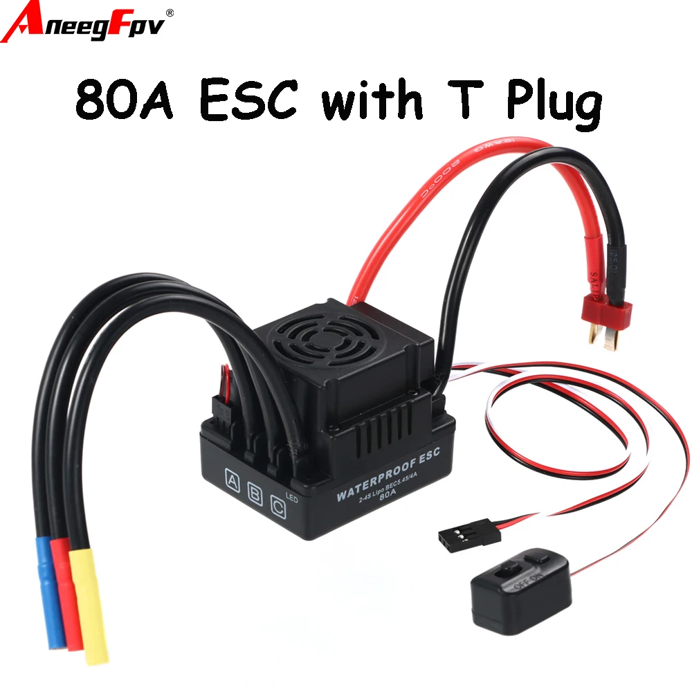 Contrôleur de vitesse électrique sans balais Rc 80A ESC avec carte de programmation 5.8V / 3A SBEC 2-4S pour voiture RC 1/8 1:8