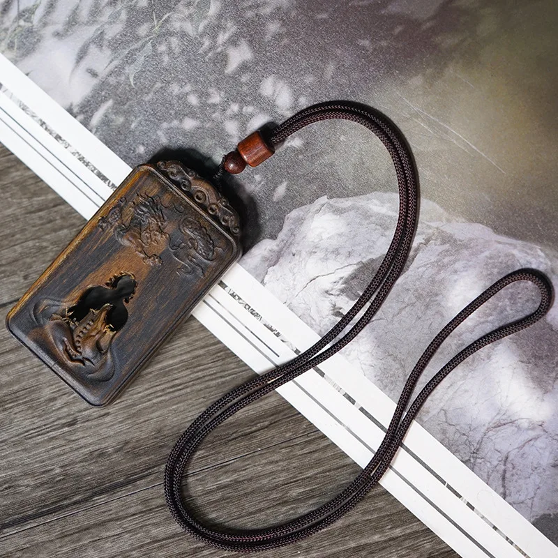 Blackwood Agarwood sculpté sans forme bouddha paix étiquette pendentif collier unisexe Festival cadeau bijoux