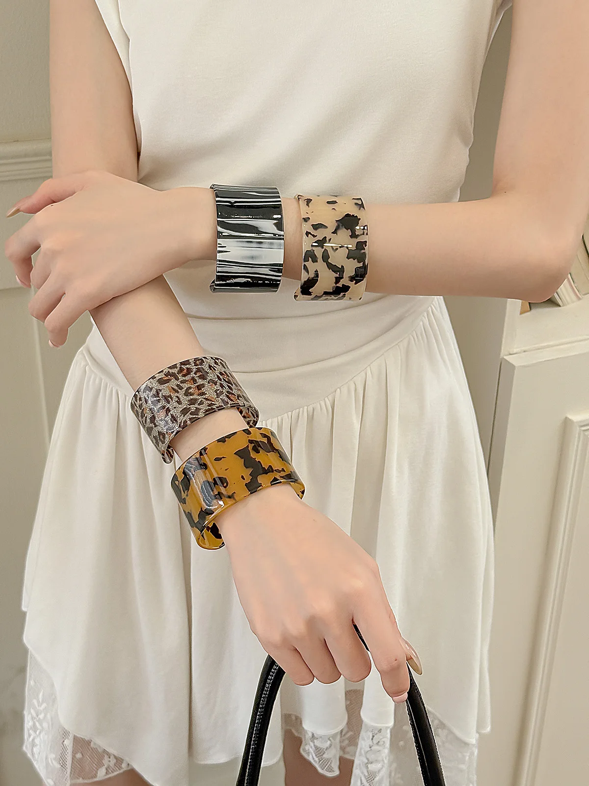 Large résine acrylique main ouverte Bracelet femmes Faion bijoux zèbre imprimé léopard Vintage épicé dame Bracelet à la mode