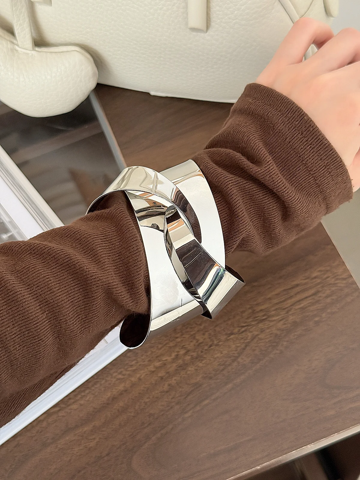 Bracelet ouvert en métal à surface lisse, version large, pour femmes, style luxueux, sensation haut de gamme, bracelets de couple