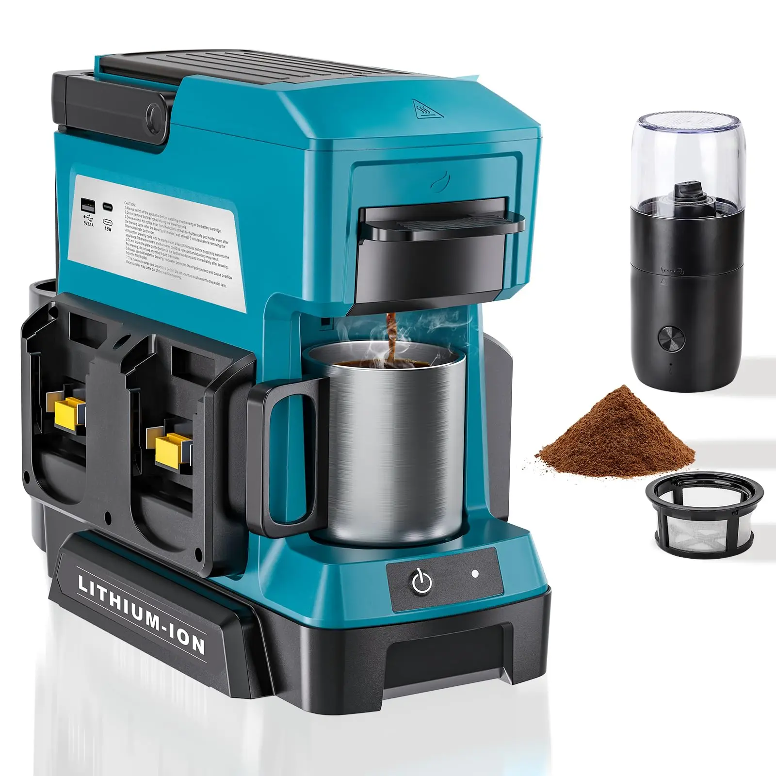 Cafetière sans fil pour batterie Makita 18 V, cafetière goutte à goutte portable avec moulin à café électrique pour camping-car, voyage, voiture, randonnée avec port de charge rapide USB/TYPE-C