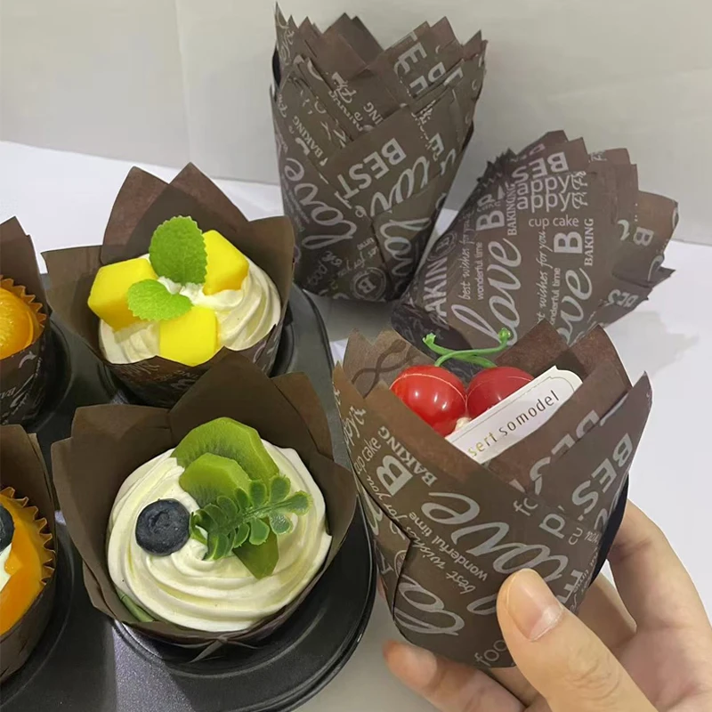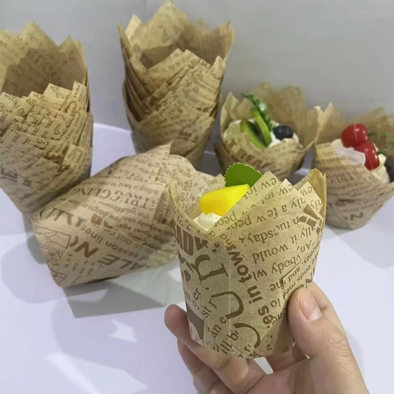 50 pièces/100 pièces gobelets en papier pour gâteau tulipe de style journal naturel de dessin animé, doublures de gâteaux, gobelets de cuisson, adaptés aux fêtes, mariages, noël, anniversaires