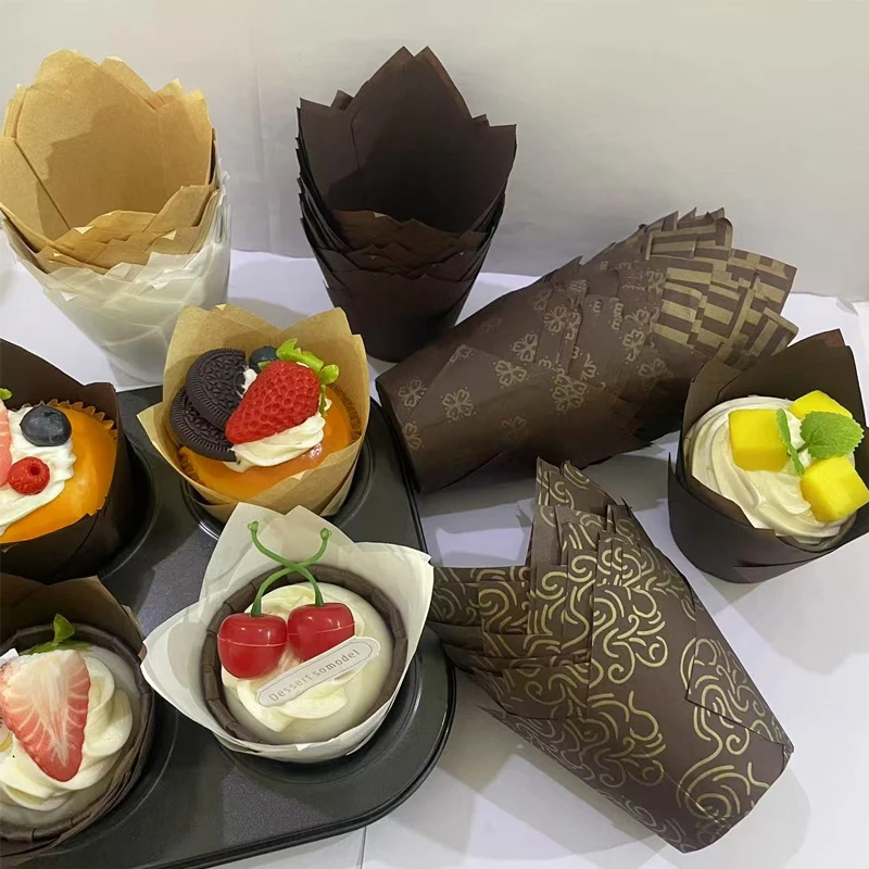 50/100/200 moules à gâteau en papier en forme de tulipe, résistants à la chaleur et anti-graisse, parfaits pour les mariages, les anniversaires, les goûters, Noël, la Saint-Valentin, la fête des Mères, les cérémonies de remise de diplômes, etc., indispensables pour la pâtisserie à domicile