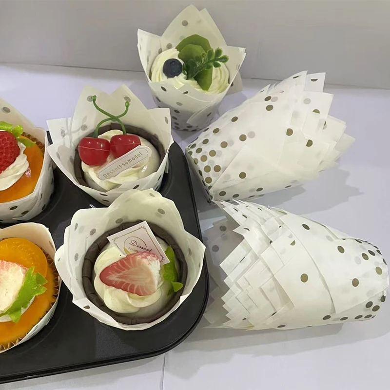 50/100 pièces de moules à gâteau en forme de tulipe à pois dorés, moules à pâtisserie de haute qualité, adaptés aux muffins et aux cupcakes, adaptés aux fournitures de fête de mariage de la Saint-Valentin