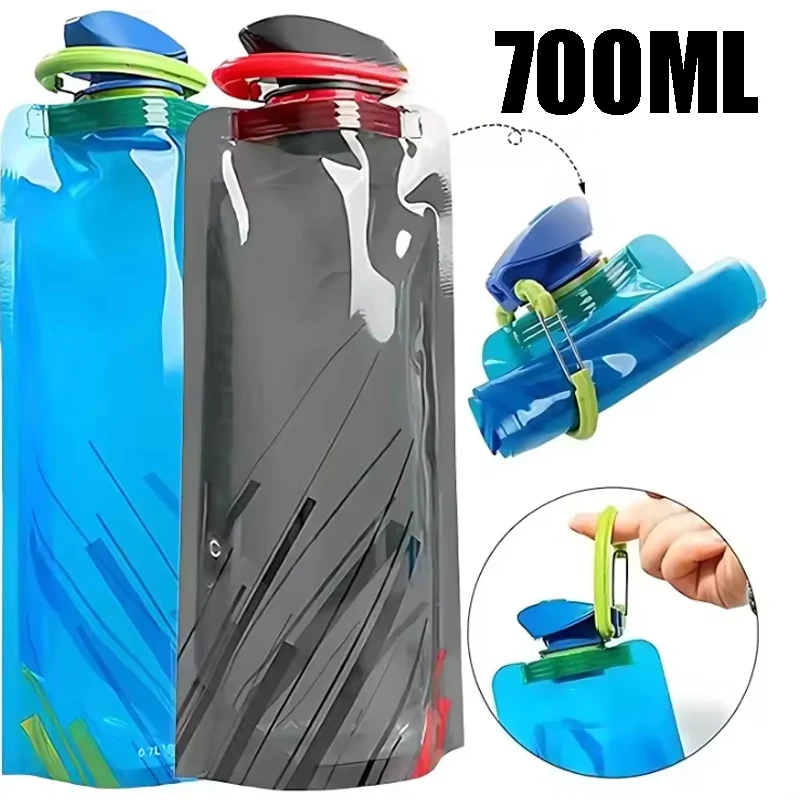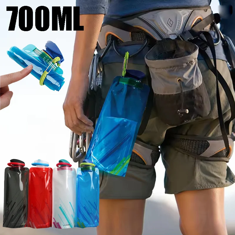 Pochette d'eau de voyage pliable, bouteille d'eau en plastique Flexible et réutilisable avec mousqueton pour les activités de randonnée en plein air