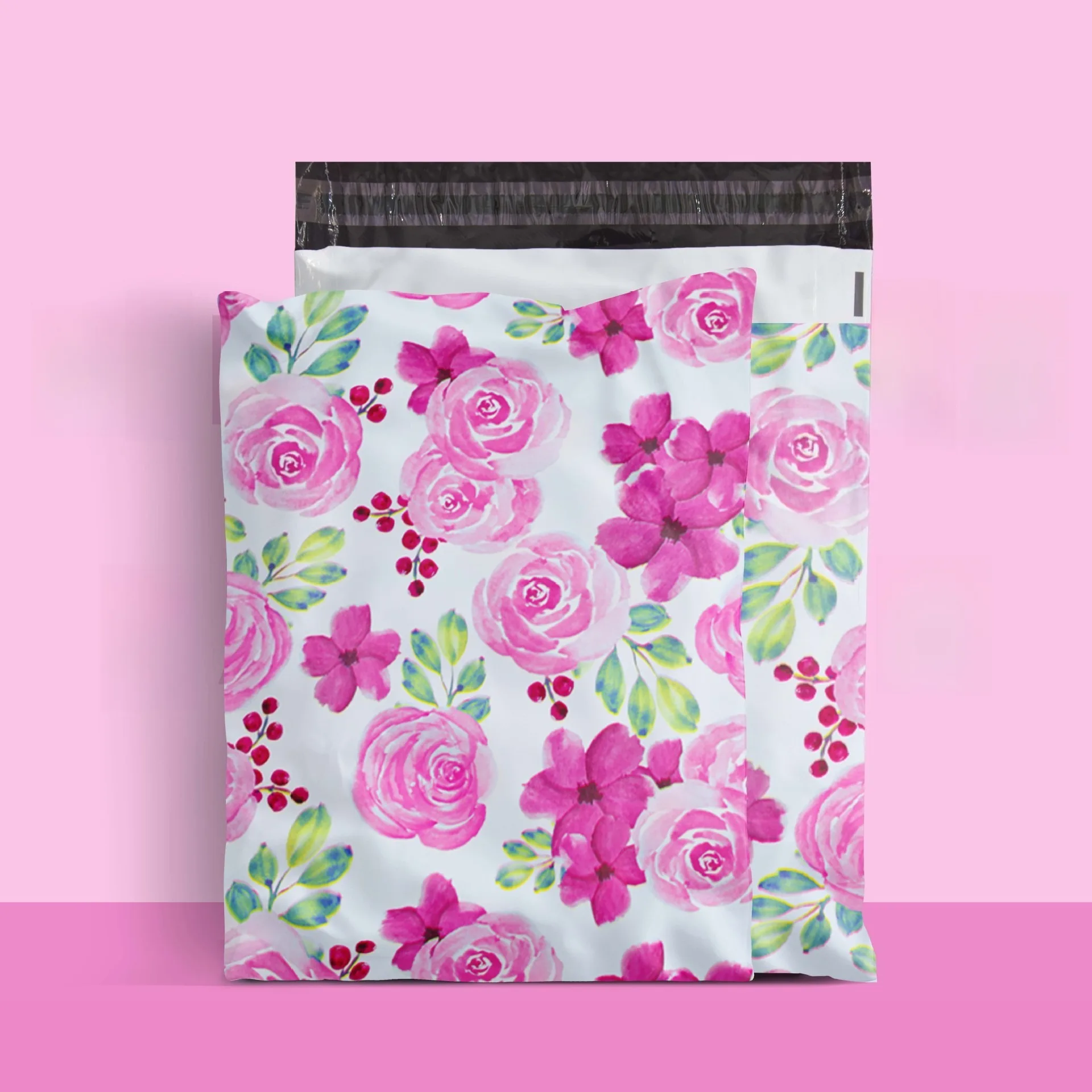 Enveloppes en polyéthylène florales roses de 9,5 x 13,5 pouces | Sacs d'expédition à motif rose aquarelle | Enveloppes d'emballage auto-adhésives étanches pour petits objets