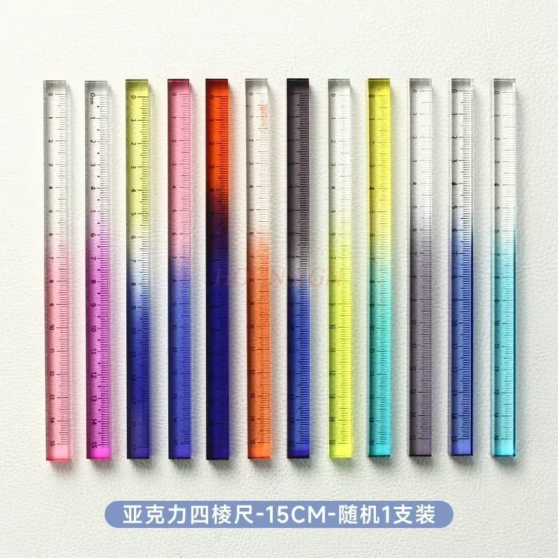 Règle carrée en acrylique à quatre côtés de couleur dégradée, échelle épaissie, règle d'ingénierie de mesure et de dessin 1 pièce