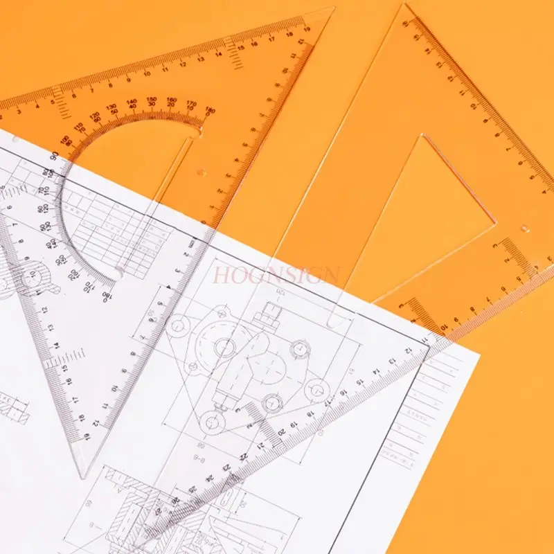 Règle triangulaire en plastique multifonctionnelle à angle droit, transparente, simple, conception de panneau triangulaire, ingénierie, 4 pièces/2 ensembles