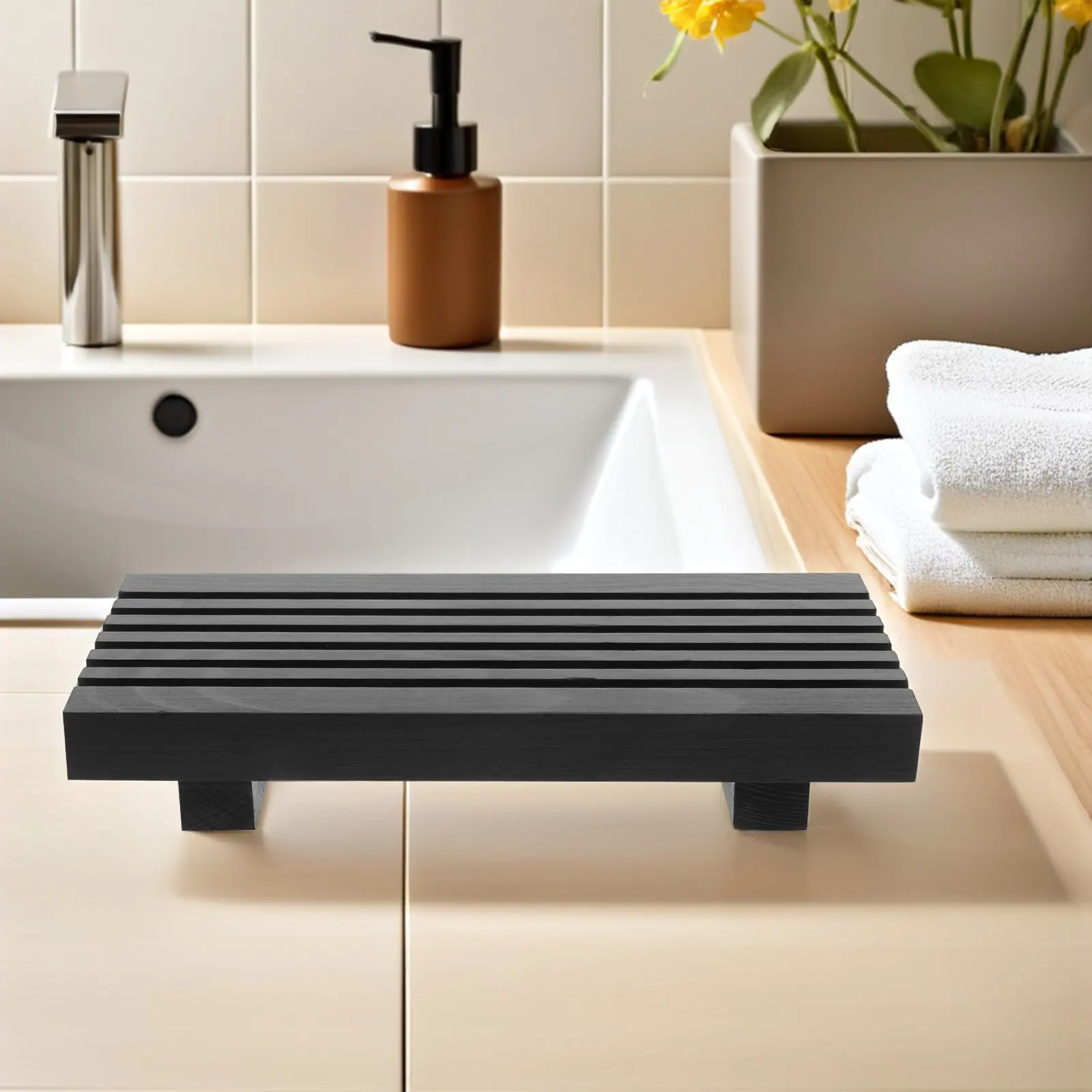 Petit support en bois rustique pour salle de bain, plateau organisateur de comptoir, support surélevé en bois de style ferme, porte-savon, distributeur, pour évier de cuisine