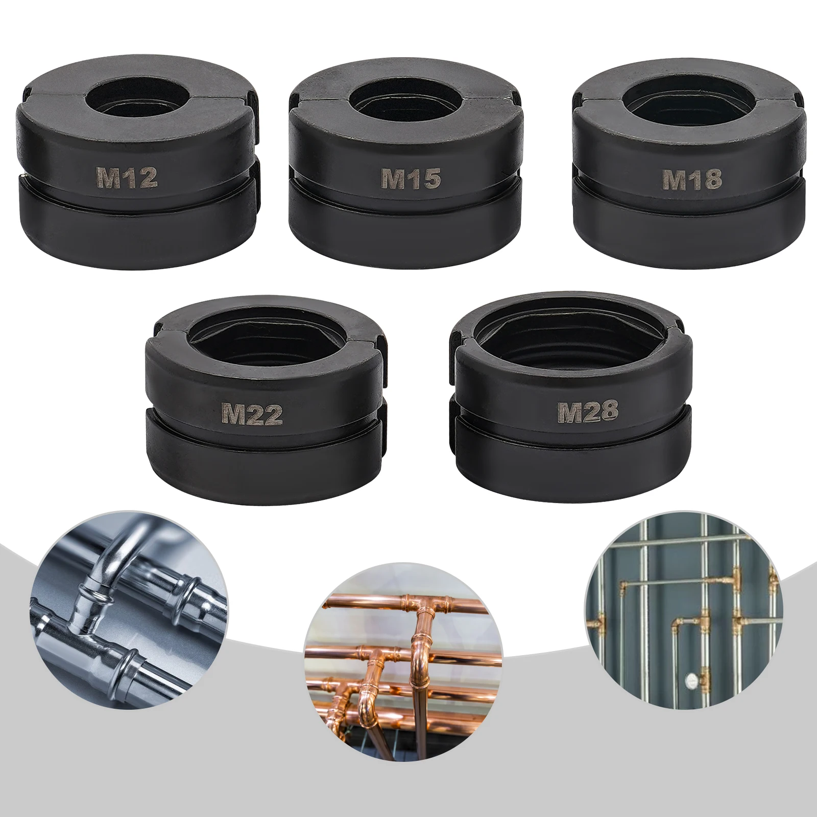 Jeu de 5 matrices de sertissage pour tuyaux M12/15/18/22/28mm, matrices M12, M15, M18, M22 et M28 pour le sertissage de tubes en cuivre