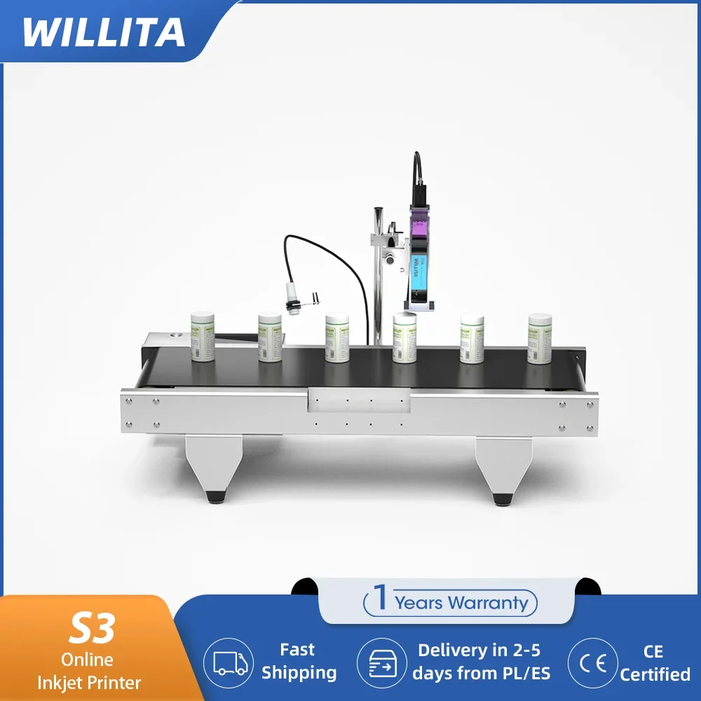 WILLITA S3 Imprimante thermique à jet d'encre en ligne avec bande transporteuse Machine de codage continue automatique pour code à barres Date d'expiration Code QR