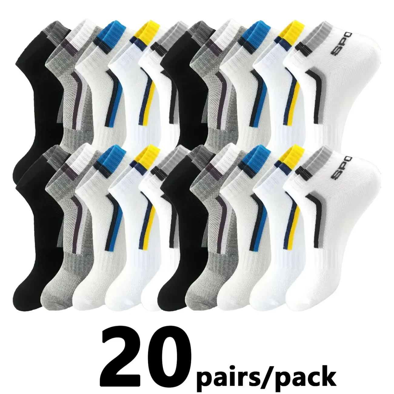 20/30 paires de chaussettes courtes pour hommes, en maille respirante, à blocs de couleur, absorbant la transpiration, chaussettes de sport décontractées pour hommes
