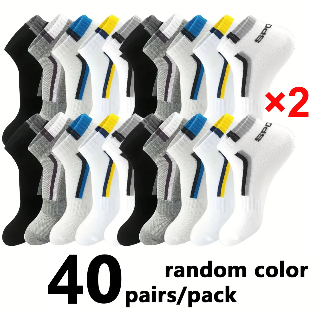 Lot de 5/10/40 paires de chaussettes bateau antidérapantes pour hommes, imprimées, respirantes, résistantes à la transpiration, anti-odeur, confortables pour le travail et le sport