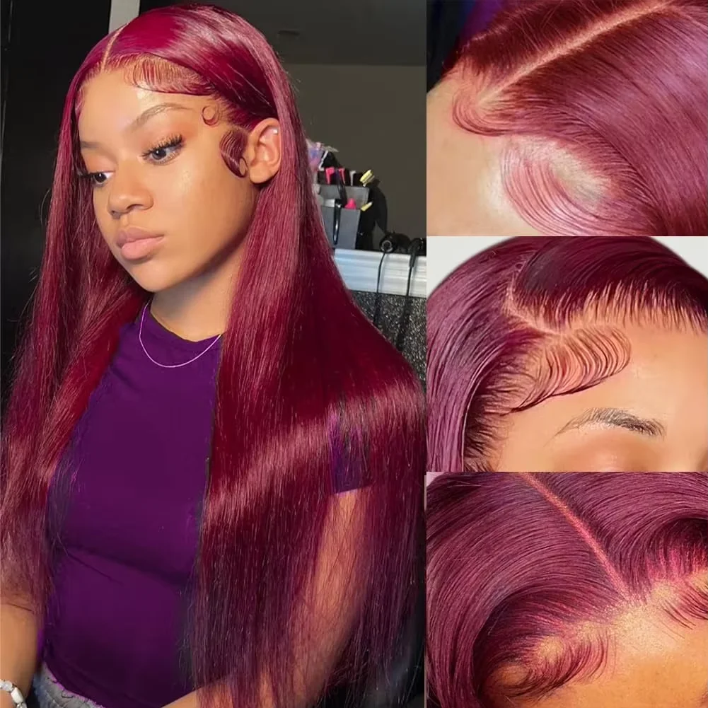 # Perruque Lace Frontale Colorée 99J Bourgogne 13x4 13x6 en Cheveux Humains Pré-Pluckée Rouge Brésilien Lisse Remy