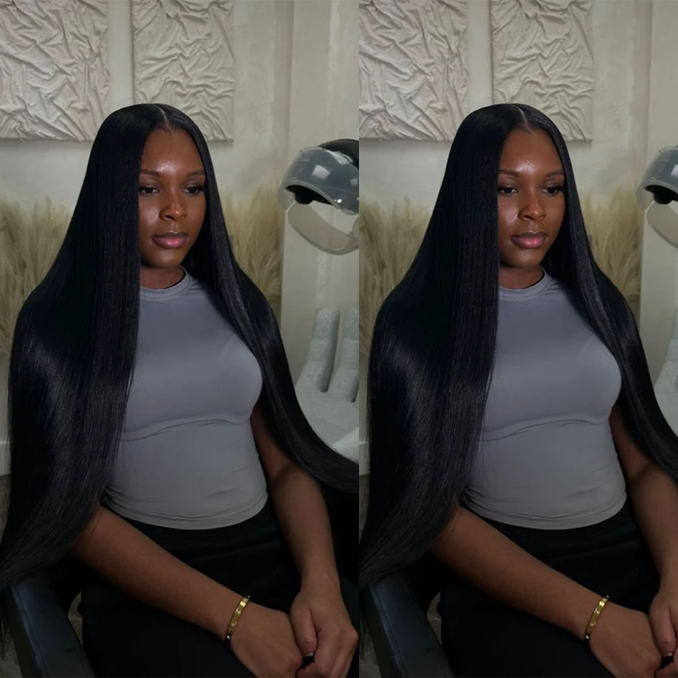 Perruques avant en dentelle pré-coupées prêtes à porter, perruques noires de fermeture de 30 pouces, sans colle, cheveux humains lisses, usure et aller pré-épilés