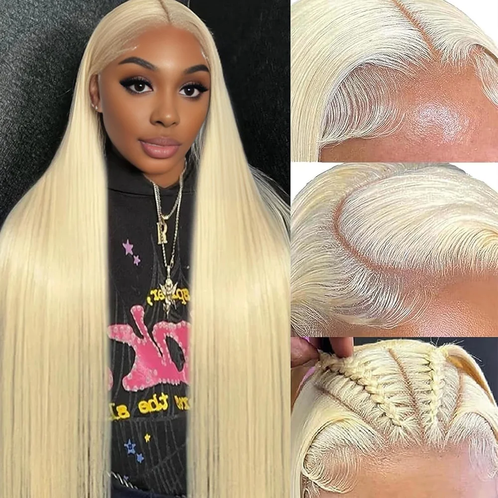 Perruque frontale HD Lace 13x6 en cheveux humains blonds 613, ondulée, 30-40 pouces, pré-épilée et pré-décolorée, pour femmes noires