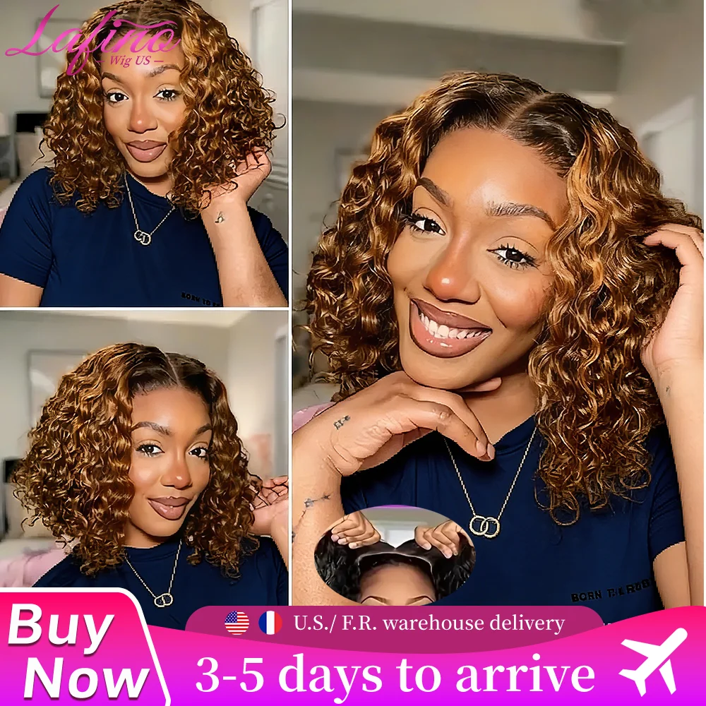Lafino perruque Ombre mettre en évidence P4/27 couleur courte Bob perruques bouclés 5x5 sans colle dentelle perruque cheveux humains profond bouclés Bob perruque cheveux brésiliens