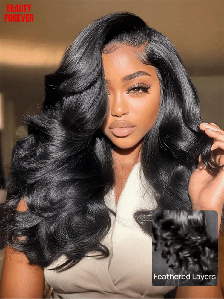 UNice papillon coupe 180% densité 7x5 dentelle vague de corps perruque de cheveux humains avec couches à plumes pré coupées pré-décorié sans colle perruque