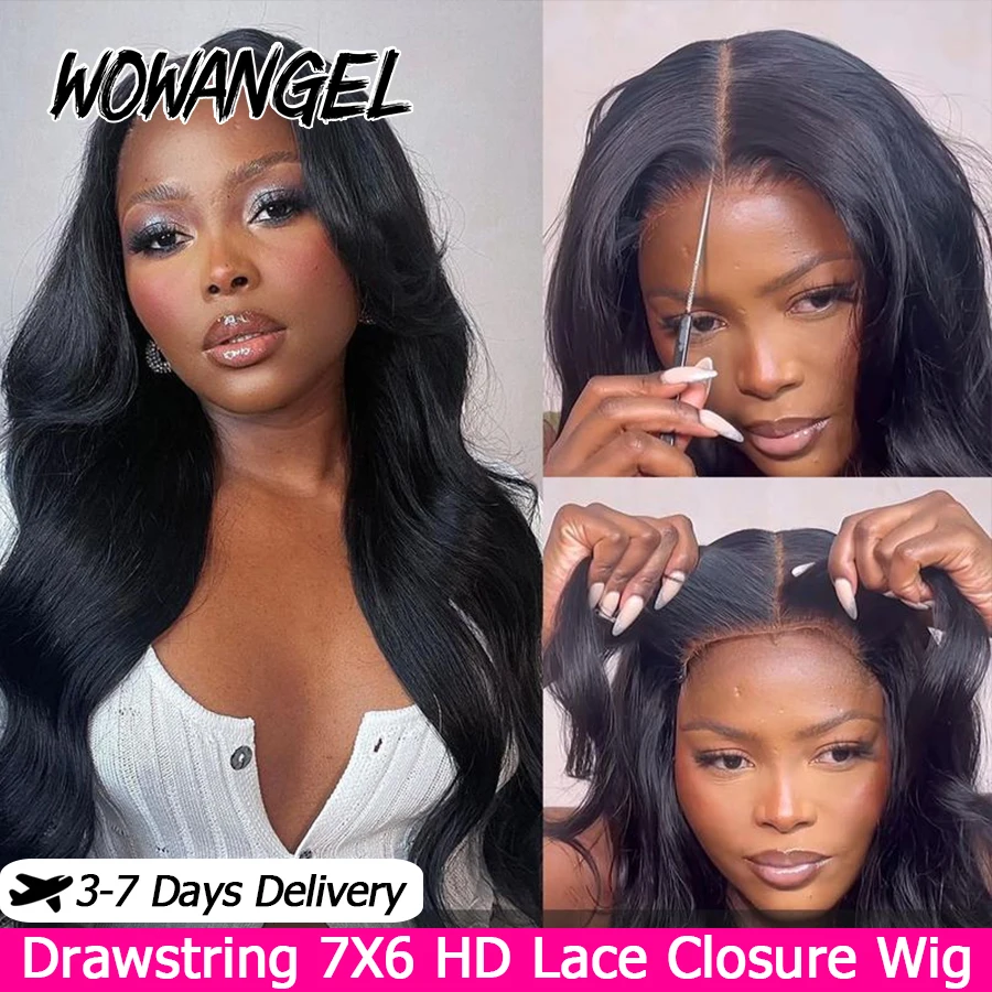 WOWANGEL Bye Bye Knots 7x6 HD Lace Closure Wig Body Wave Human Hair Wig With Invisi Drawstring Wear & Go Glueless Wig For Women
