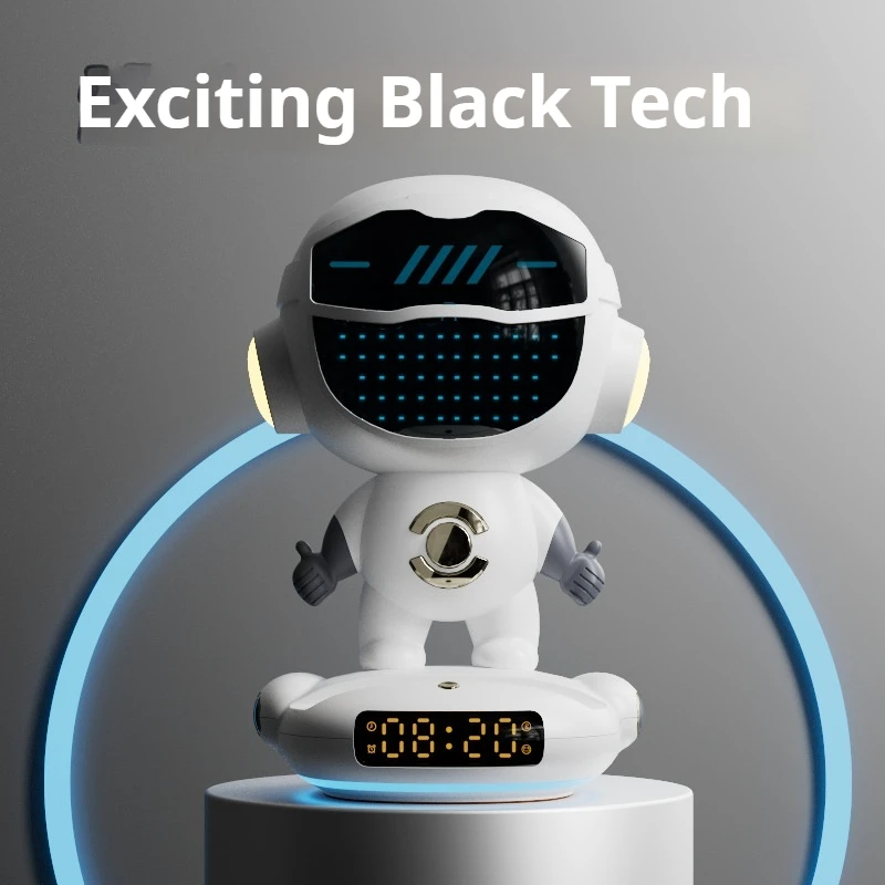 Haut-parleur Bluetooth AI style astronaute, réveil numérique Wi-Fi, lumière d'ambiance RVB, radio FM, veilleuse d'aide au sommeil