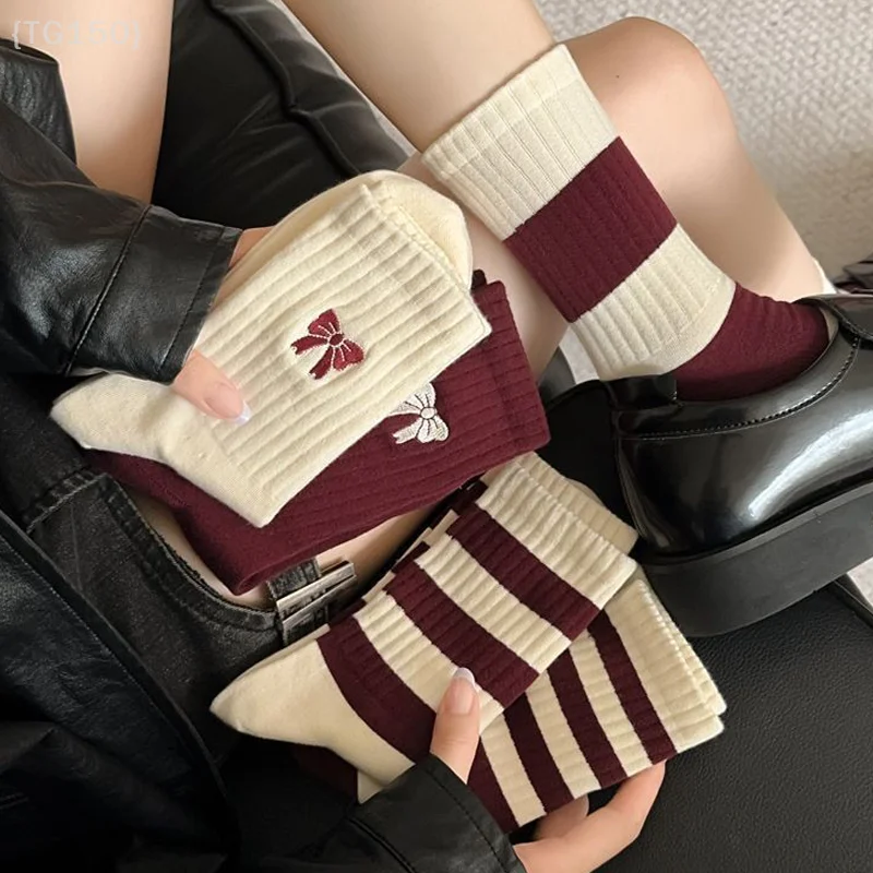 【N】 Nouvelles chaussettes pour femmes pour l'automne et l'hiver, chaussettes de skateboard décontractées tricotées en coton pour filles, chaudes, mi-mollet