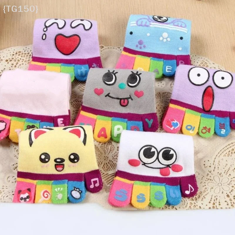 【Ja】Chaussettes courtes en coton respirant à cinq doigts, motif dessin animé mignon, chaussettes amusantes et originales
