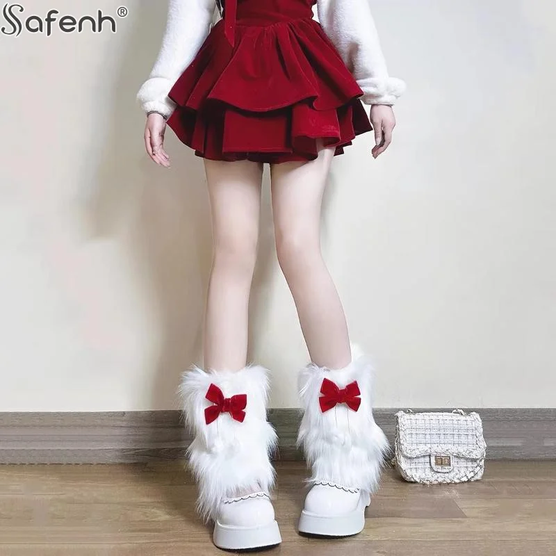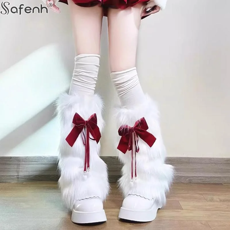 Guêtres en fausse fourrure blanche 20/40CM, couvre-bottes, style Y2K Goth, chaussettes unies, chaussettes punk mi-longues, chaussettes chaudes tendance