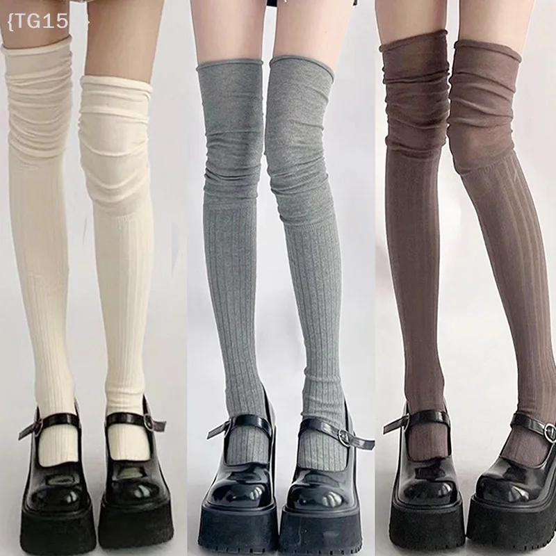 【Ja】Chaussettes hautes unies pour femmes - Chaussettes hautes en coton thermique tendance, leggings décontractés au-dessus du genou