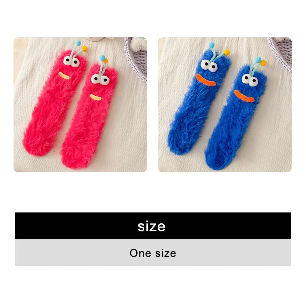 2026 Chaussettes d'intérieur en polaire amusantes à grands yeux, en velours corail, épaisses, chaudes et douces, pour l'automne et l'hiver