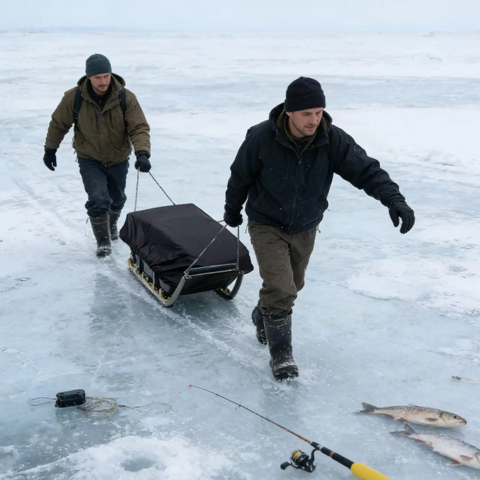 Housse de traîneau de pêche sur glace, protection pliable et étanche, 60.24x24.02x8.27 pouces, housse de traîneau à glace Oxford avec bandes élastiques pour l'hiver
