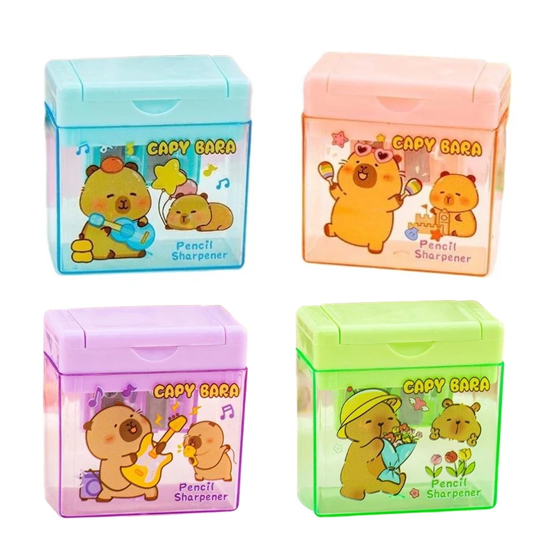 Taille-crayon Capybara à Double trou, 1/4 pièces, papeterie Kawaii pour étudiants, fournitures de bureau, Mini taille-crayon pour enfants