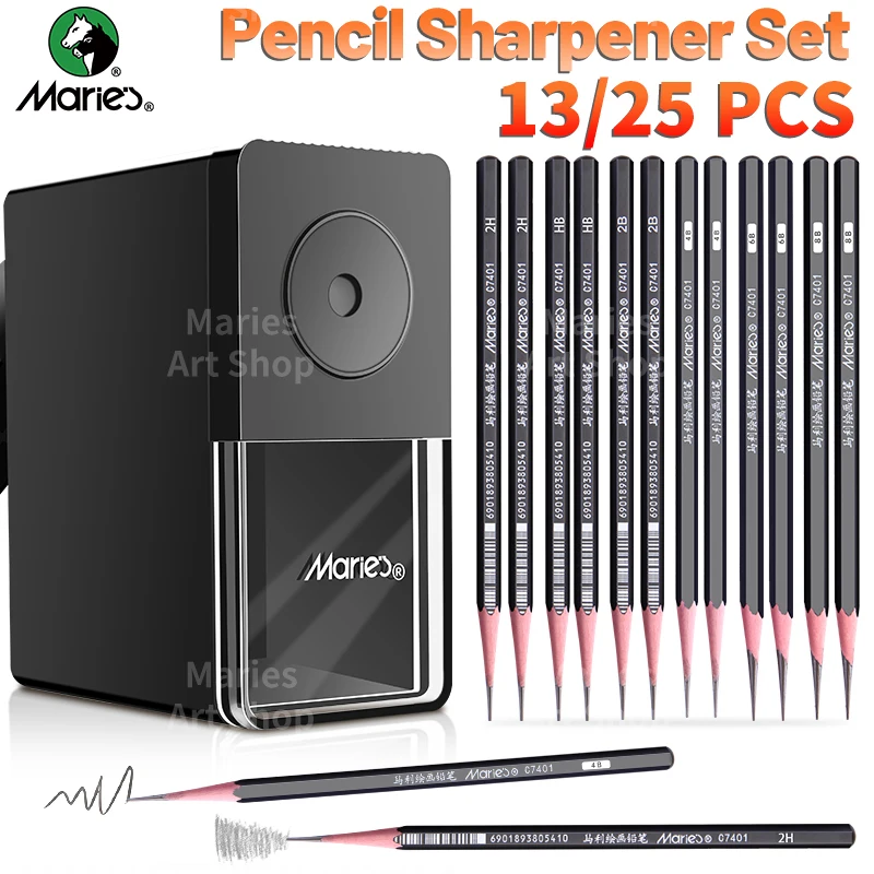 25/13 pièces ensemble de taille-crayon manuel Marie avec 12/24 pièces de crayon, 5 plumes de crayon longues réglables, adapté au rentrée scolaire