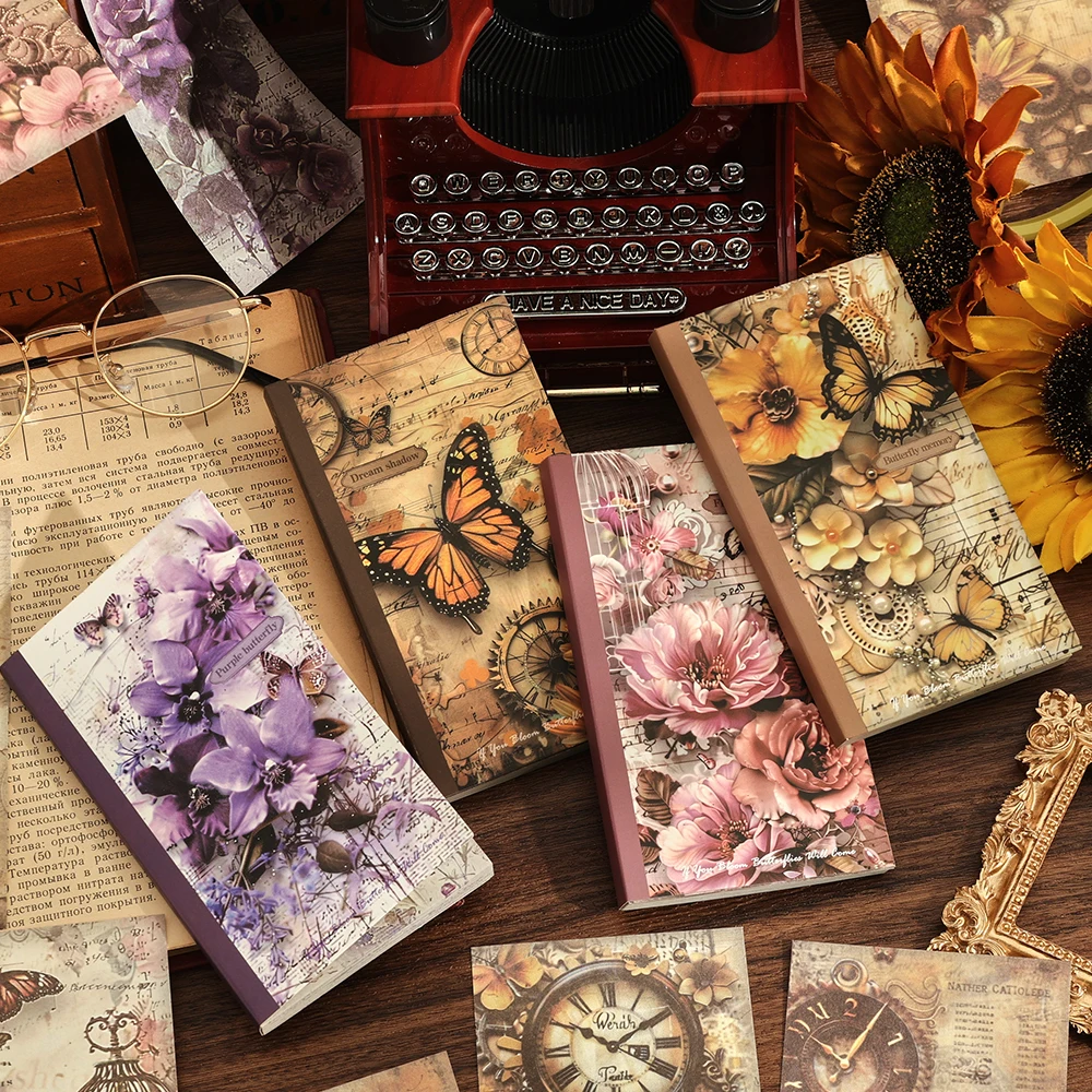 Papier Scrapbook Non collant Vintage fleur papillon, 60 feuilles, matériel de fond décoratif pour livre, fournitures pour journal intime