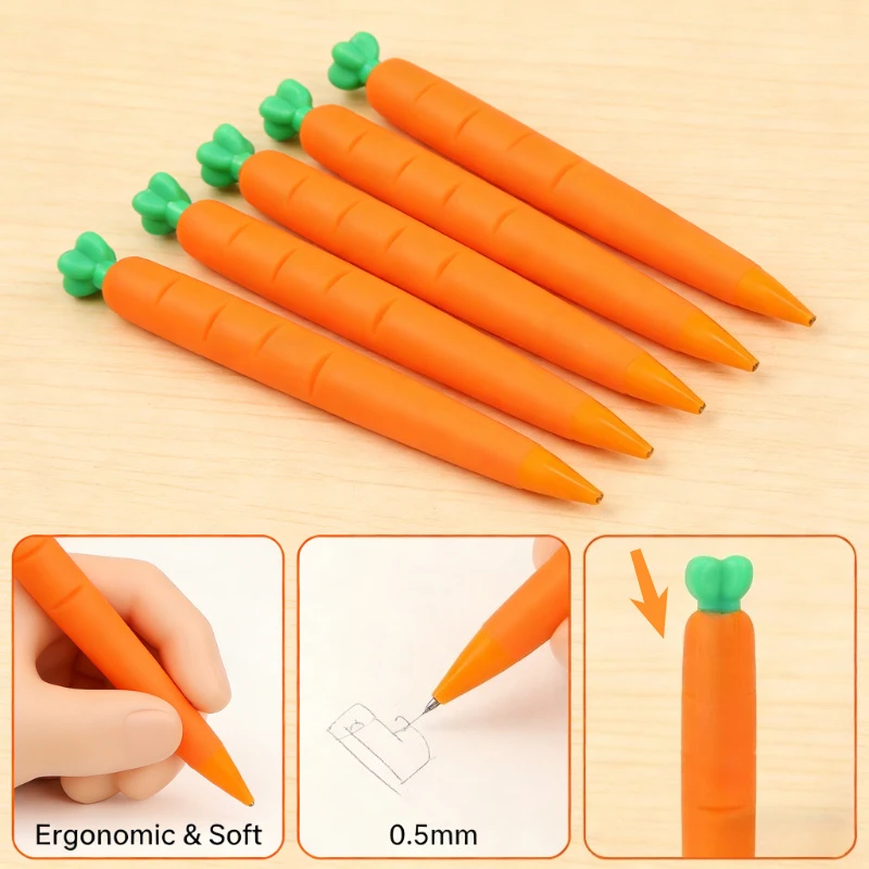 Crayons automatiques en forme de carotte, plomb de qualité B, matière plastique, fournitures scolaires créatives sans affûtage, 5 pièces