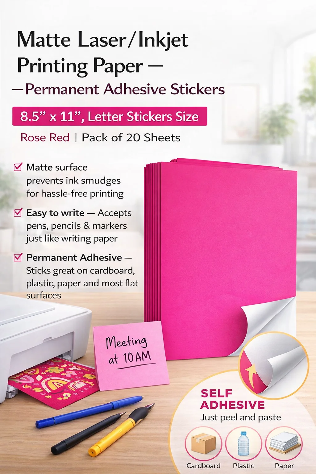 10 feuilles, papier autocollant A4, papier adhésif A4 rose/orange/jaune/blanc/Kraft pour imprimante laser/jet d'encre