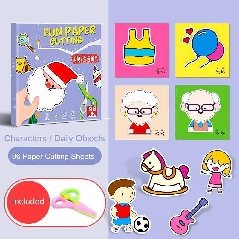 Kit d'artisanat amusant pour enfants, découpe et coloriage du papier, avec ciseaux de papeterie, jouet éducatif d'entraînement de mise au point pour bricolage (à partir de 3 ans)