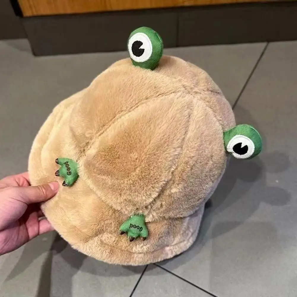 Chapeau de grenouille en peluche confortable chapeau de seau de grenouille en peluche pour les femmes chapeau de pêcheur coupe-vent d'hiver avec conception de dessin animé 3d accessoire extérieur chaud