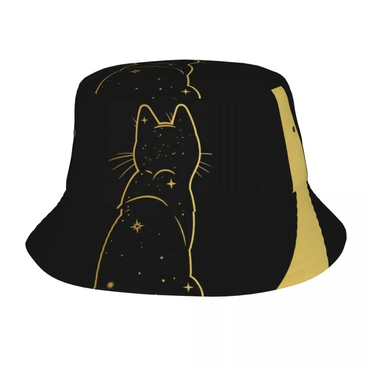 Chat assis sur la croissant de lune casquette de pêcheur Hip Hop Gorras été unisexe seau chapeau en plein air plage Camping randonnée casquettes de pêche