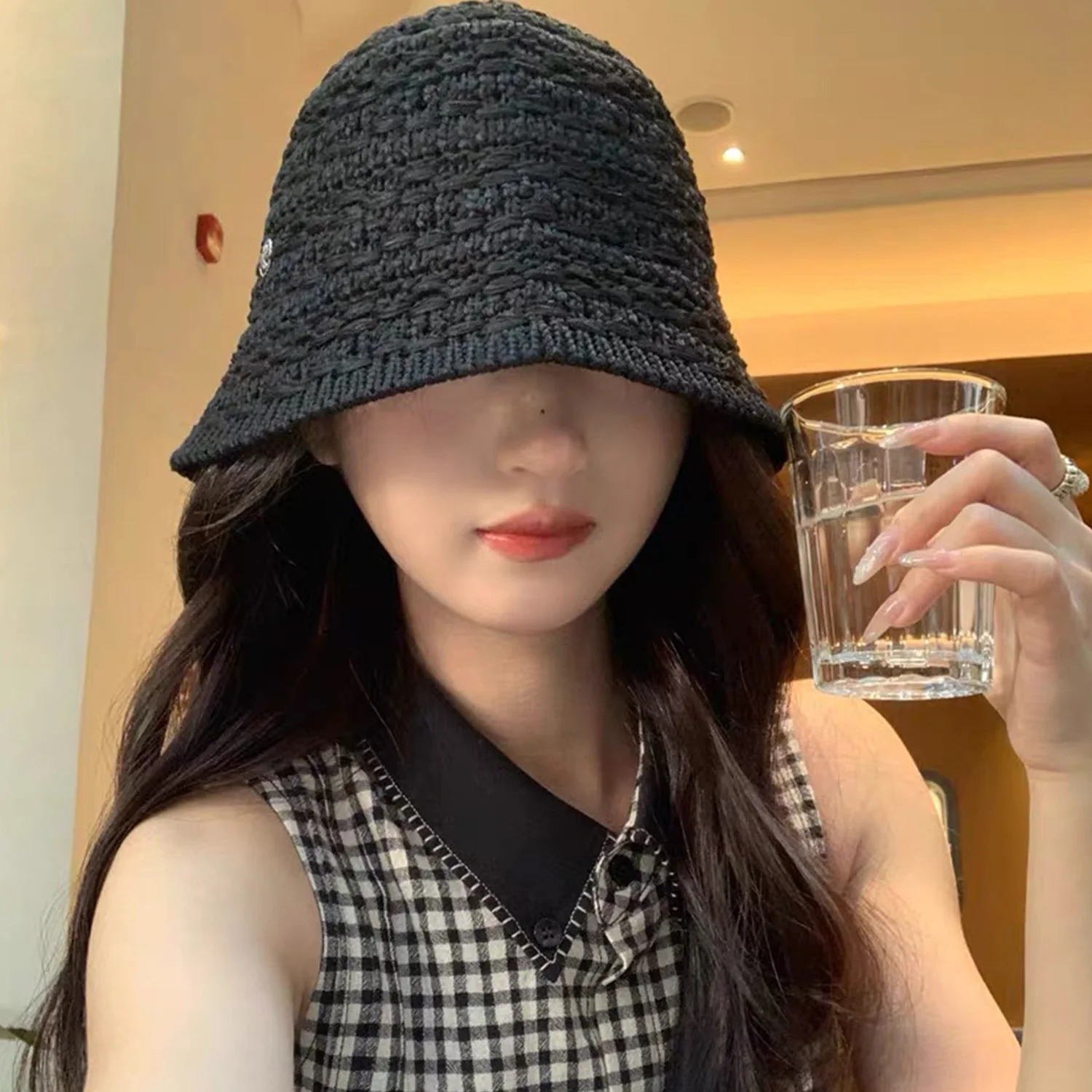 Chapeau de paille d'été pour femmes, Chapeau seau à visière, Chapeau de pêcheur, tissage en Polyester, Chapeau de pêche pour filles, chapeaux de soleil, outil, couverture faciale
