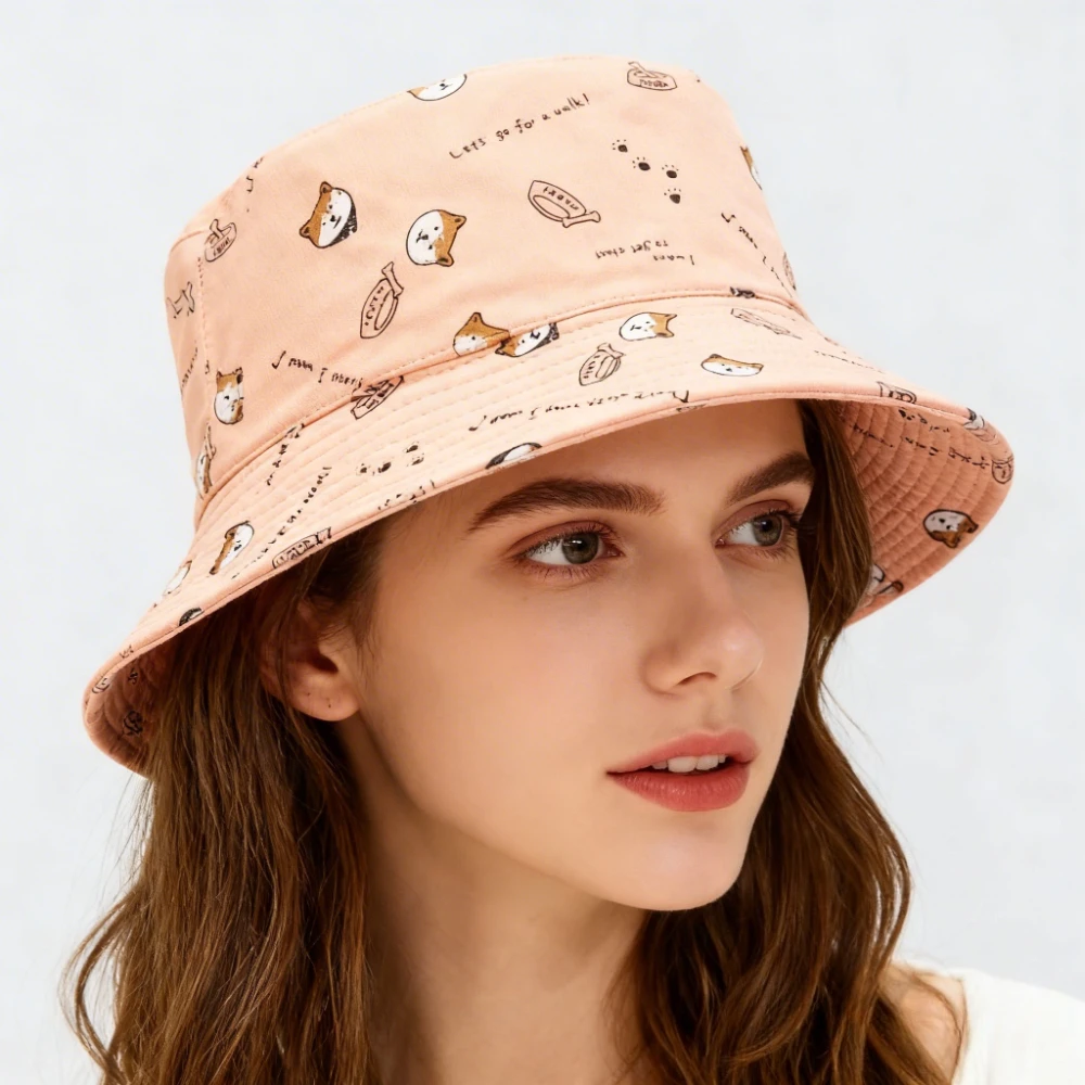 Chapeau Bob Unisexe en Coton à Imprimé Chien de Dessin Animé Double Face, Mignon, pour Printemps et Été, Protection Solaire pour Voyages en Extérieur