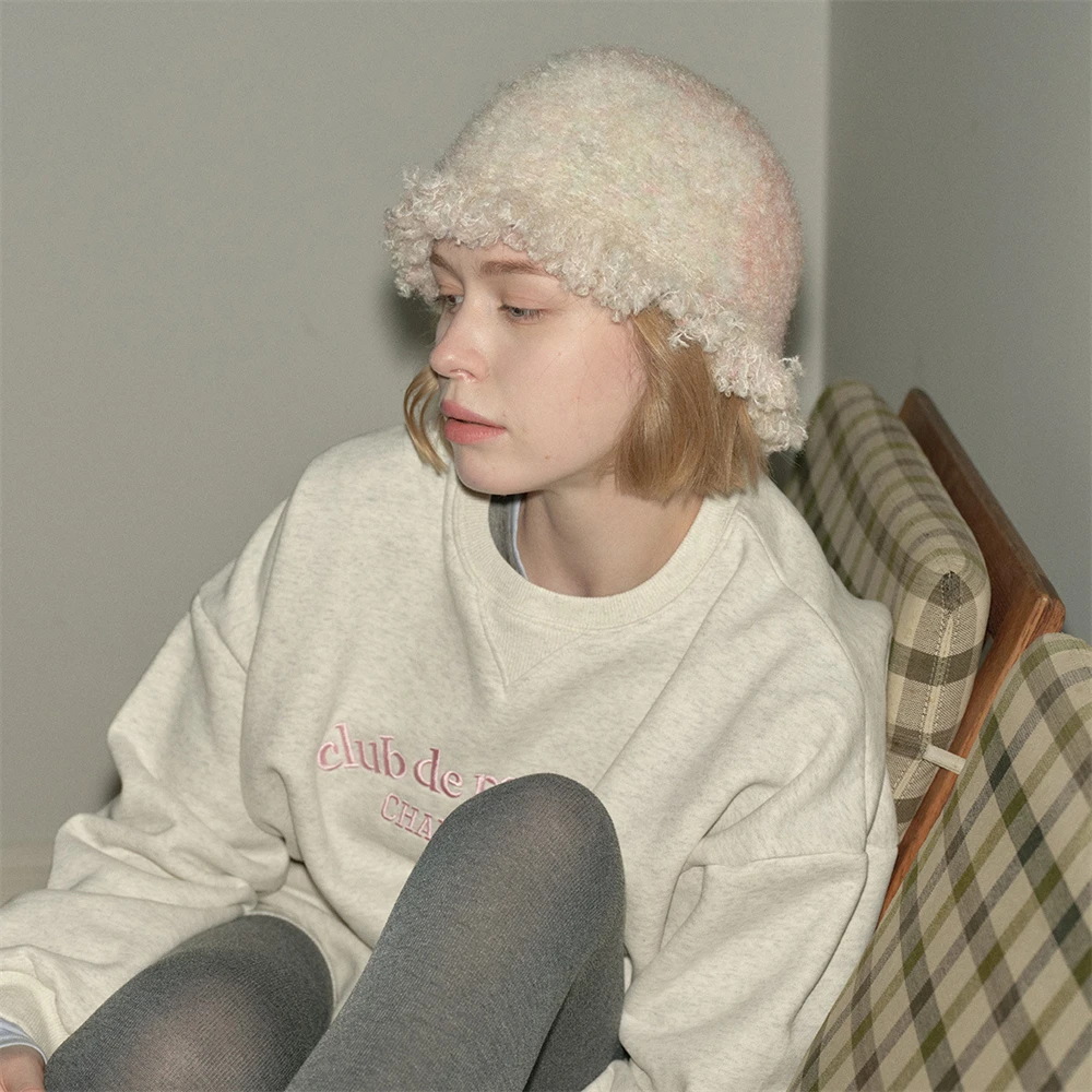 Chapeau de bassin en dentelle à franges mélangées de laine, chapeau de pêcheur tricoté Vintage pour femmes, casquettes chaudes d'hiver unisexes, bonnet en laine de couleur assortie