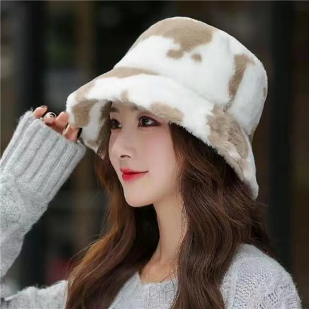 Chapeau seau en peluche pour femmes, mode automne et hiver, chapeau chaud et froid, imprimé léopard épais