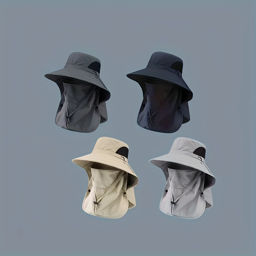 Chapeau de protection solaire pour hommes et femmes, chapeau de pêcheur d'extérieur, masque facial détachable, chapeau à séchage rapide, chapeau de randonnée à large bord