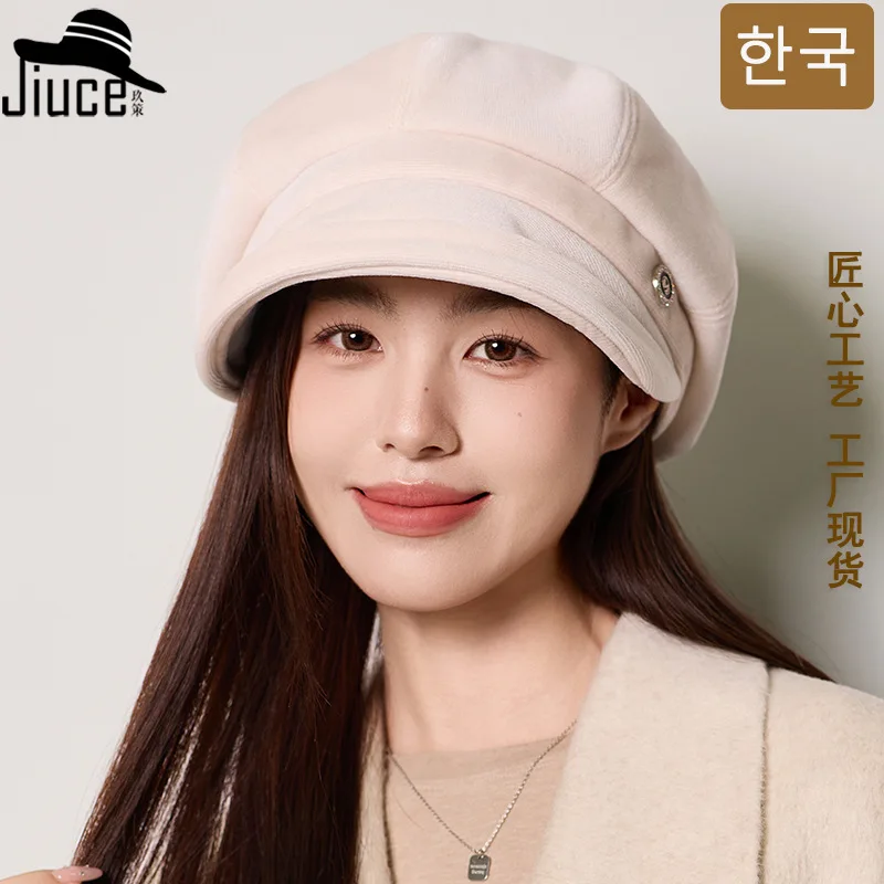 Chapeau octogonal en velours doré polyvalent, haut de gamme, bord roulé, article pour femmes, couleur unie, béret élégant Chapeu 4m710