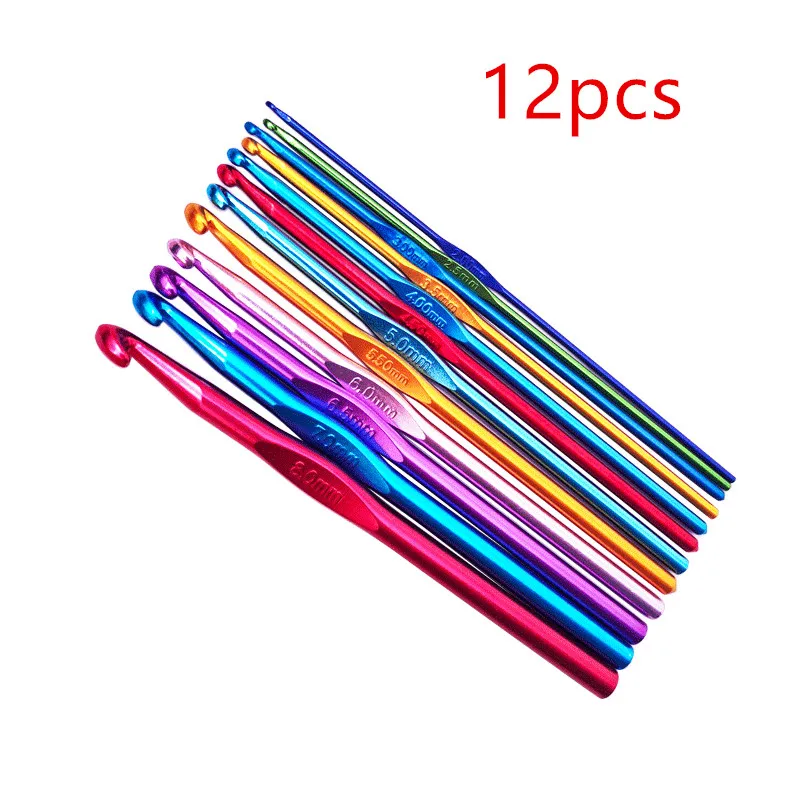 Aiguilles à tricoter au Crochet en aluminium, 12 pièces, 2-10mm, aiguilles à coudre pour artisanat, sac, Crochet en métal, tissage, aiguilles à Crochet, accessoires
