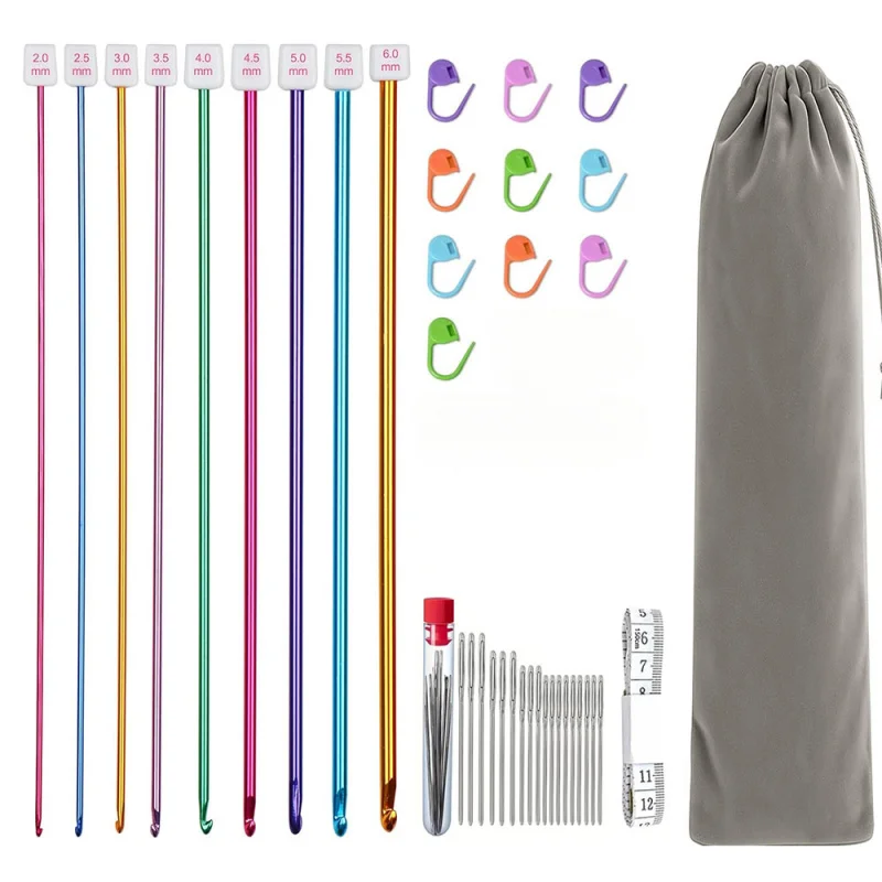 Ensemble de 23 crochets en plastique, comprend un câble en plastique, un Crochet, des aiguilles à tricoter en aluminium, au détail