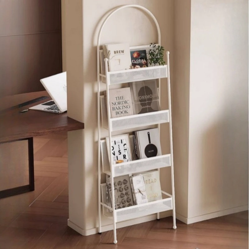 Étagère à livres en fer multicolore, multifonctionnelle, 3 compartiments, support de rangement pour journaux, installation sans perçage