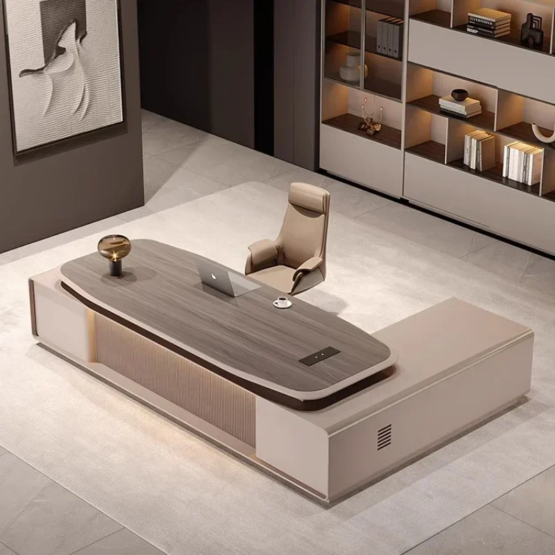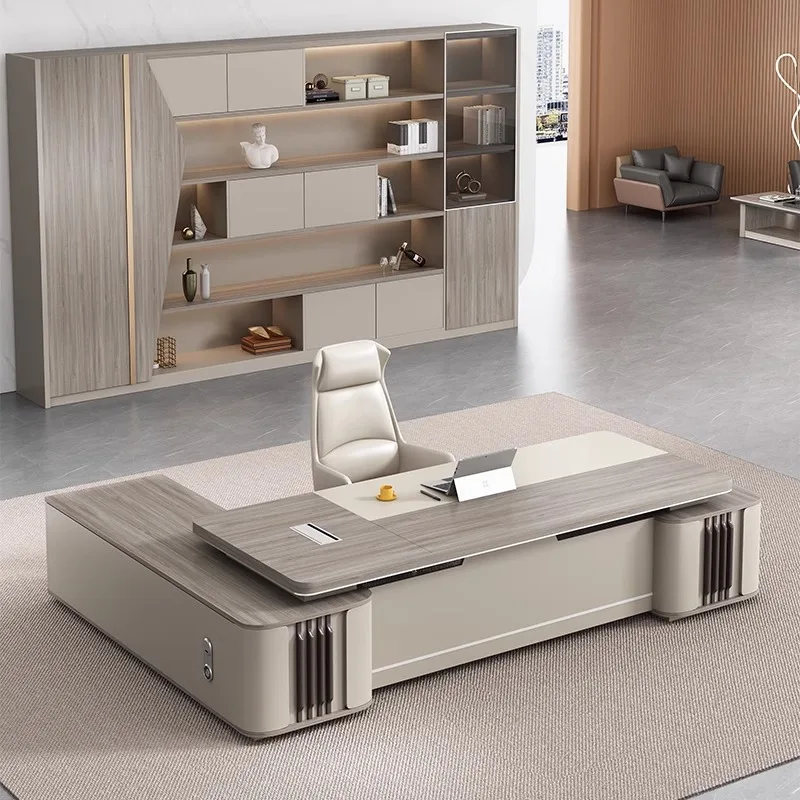 Superviseur de lumière de luxe moderne Boss Manager bureau de direction de luxe avec tiroirs de rangement de lampe bureaux d'ordinateur bibliothèque grande