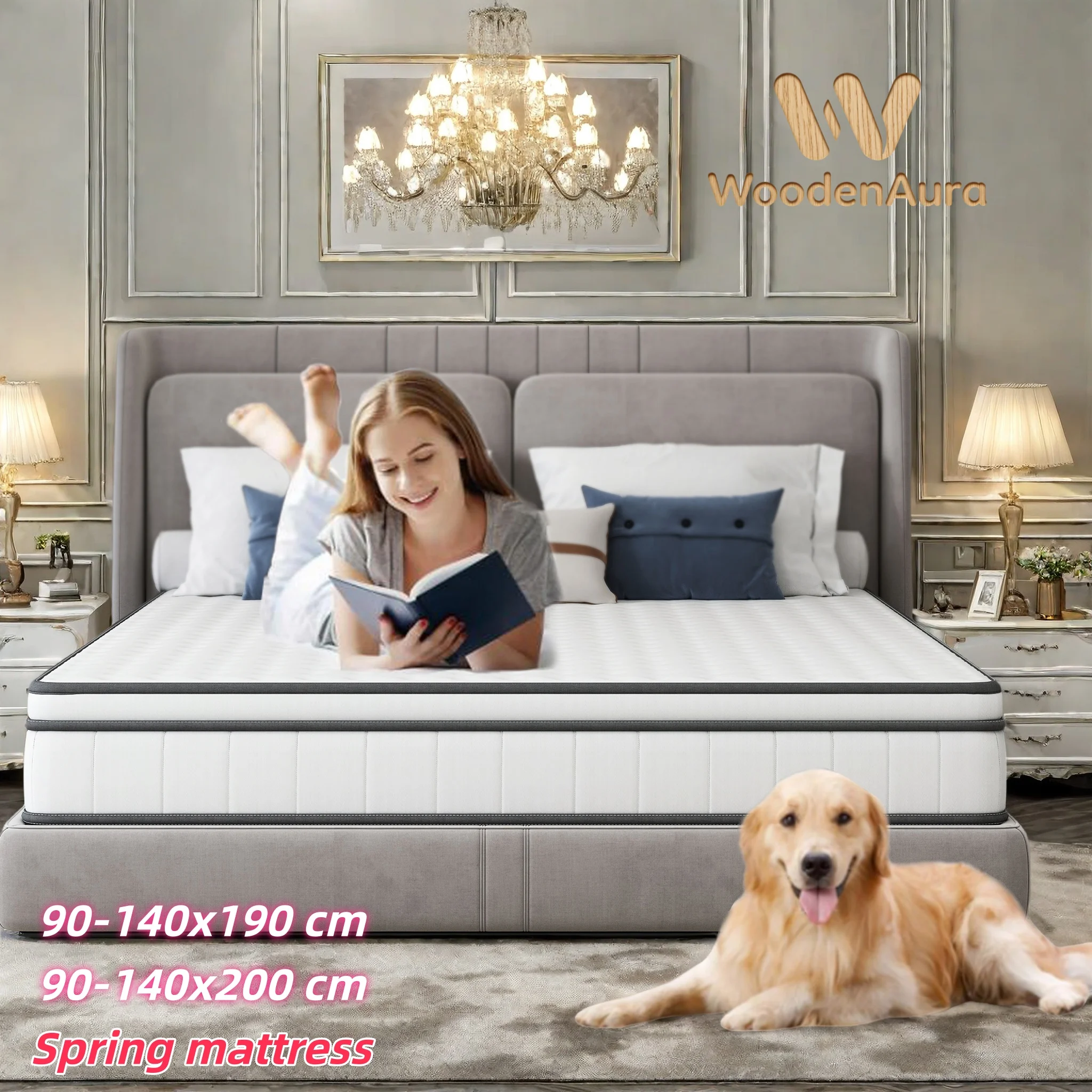 Matelas HOUSE SPOLE 160x200cm 7 zones avec noyau de ressorts ensachés et mousse rafraîchissante, anti-poussière et respirant, blanc