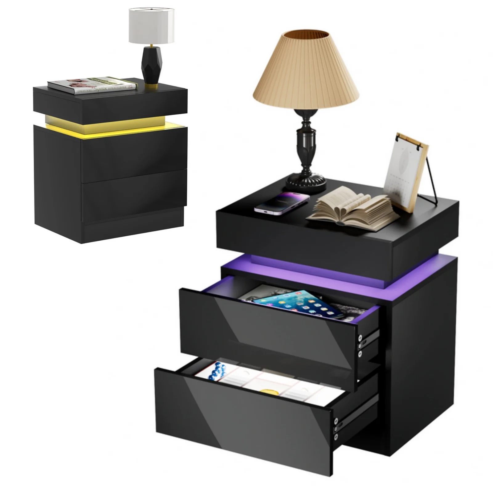 Table de chevet LED avec 2 tiroirs, table de chevet intelligente LED pour chambre à coucher, commode intelligente LED pour chambre à coucher, table de chevet avec ports USB